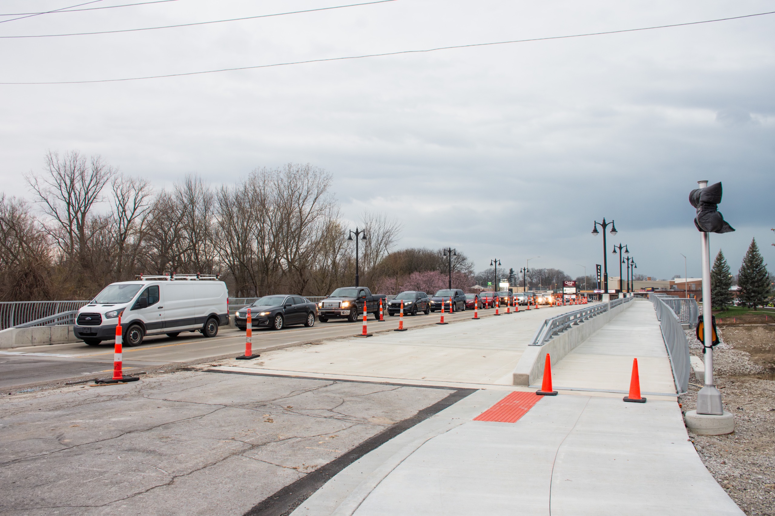 A new traffic pattern will be in effect for several weeks while the intersection is resurfaced. Work on the bridge will be ongoing April to May.