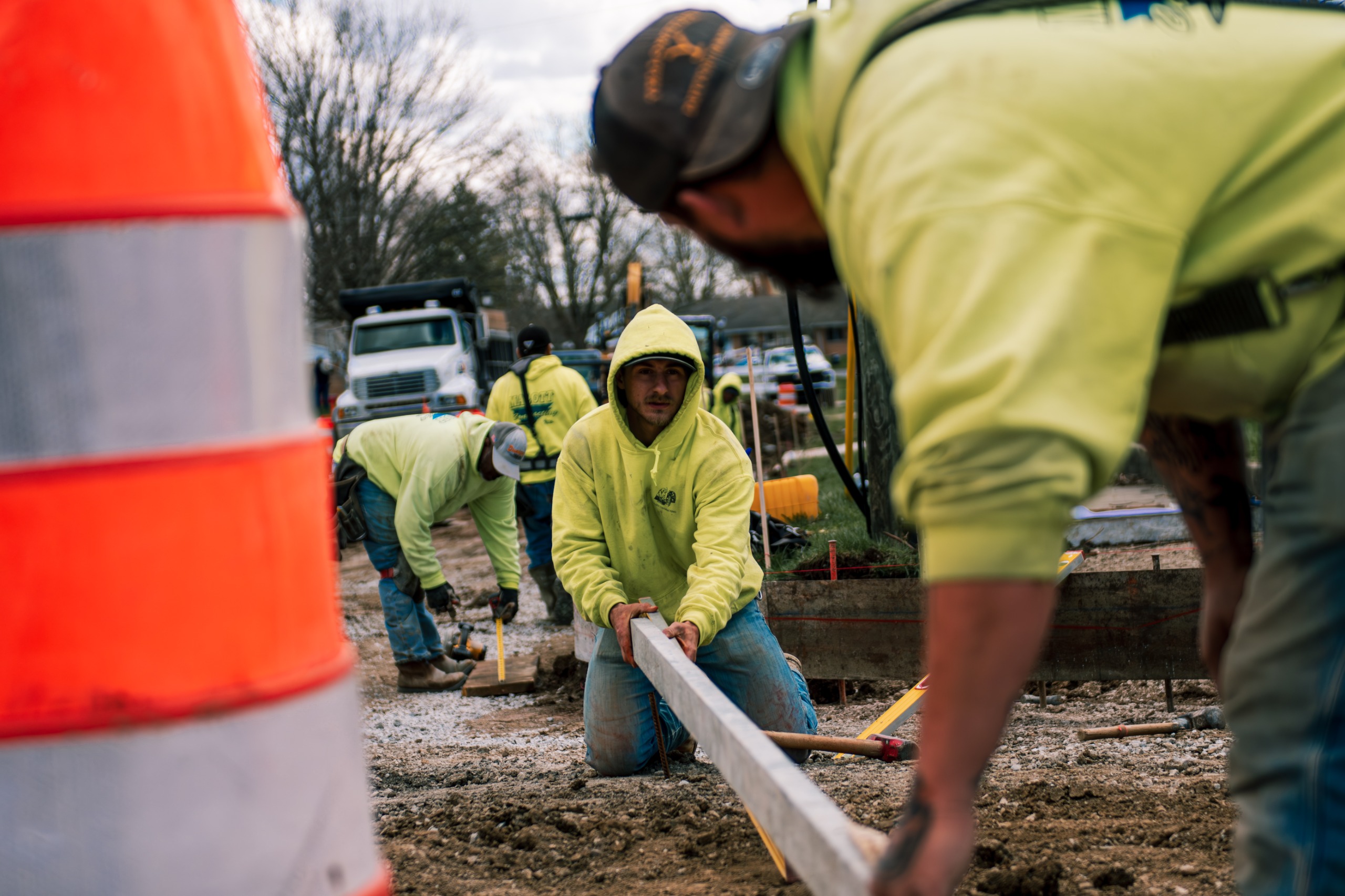 Slow down and give workers extra room. Drive cautiously through the jobsite especially If workers are on site.