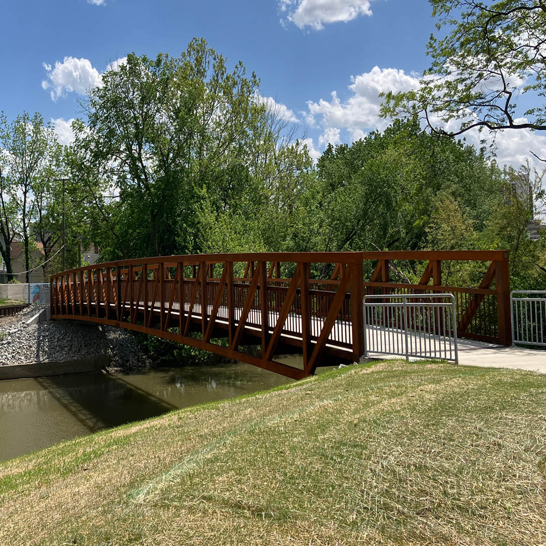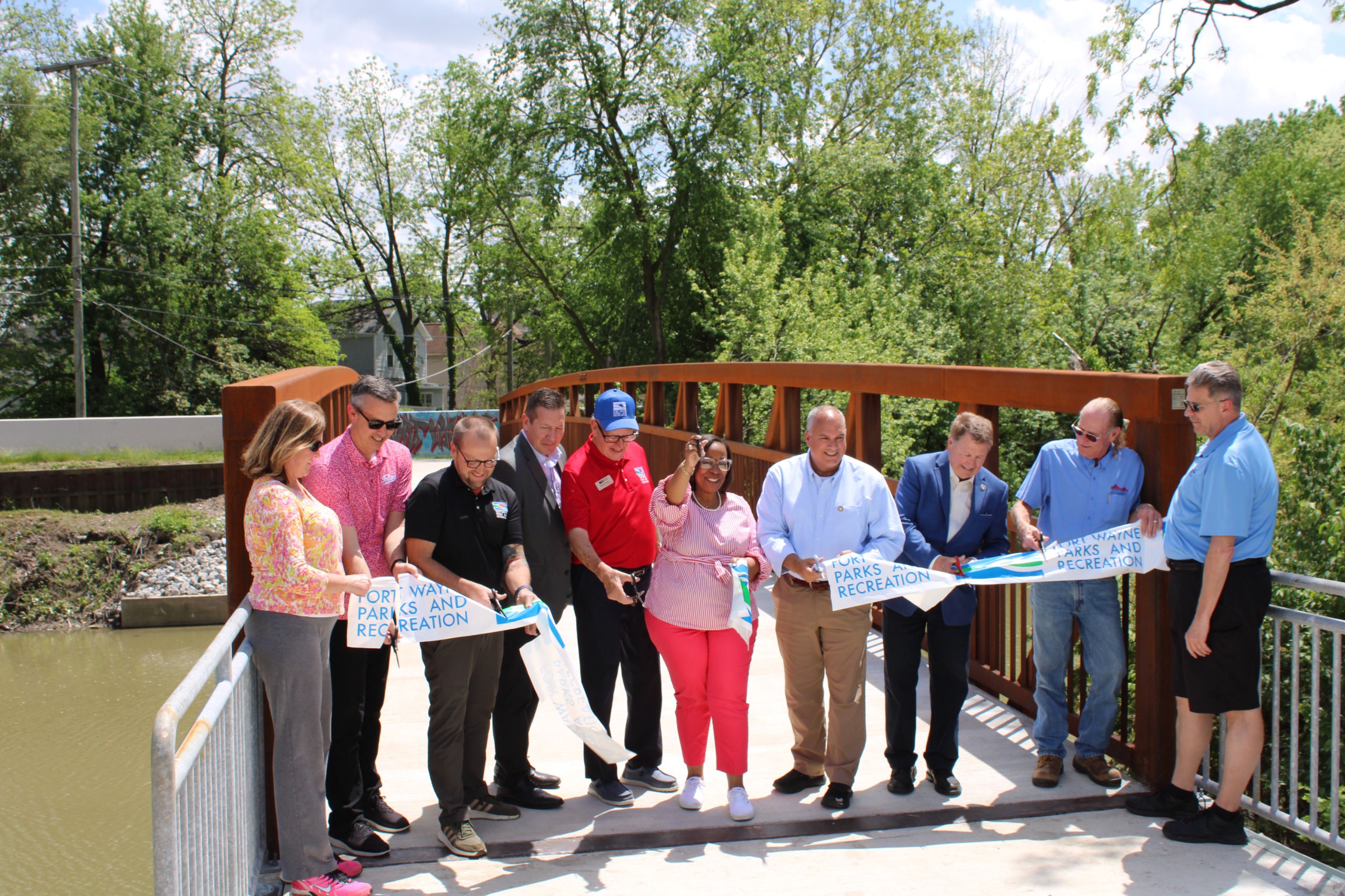 The City of Fort Wayne Parks and Recreation Department has removed and replaced the existing Lawton Park Pedestrian Bridge in the Spy Run Neighborhood. This project included the demolition of the existing trestle bridge structure and construction of a new bridge and associated site improvements over Spy Run Creek on the St Marys Pathway. The bridge was officially opened in May of 2025.