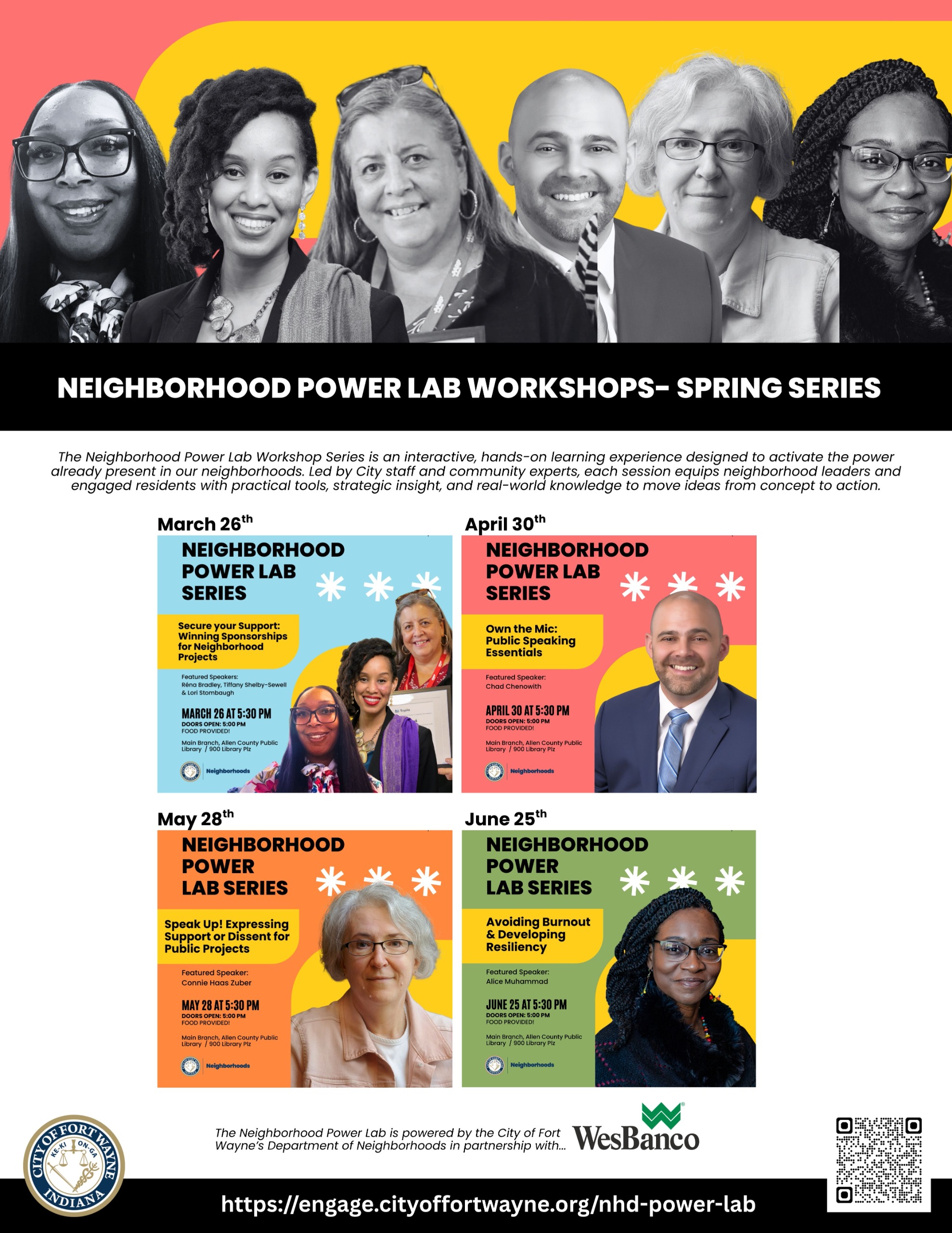 The Neighborhood Power Lab Workshop Series is an interactive, hands-on learning experience designed to activate the power already present in our neighborhoods. Led by City staff and community experts, each session equips neighborhood leaders and engaged residents with practical tools, strategic insight, and real-world knowledge to move ideas from concept to action.