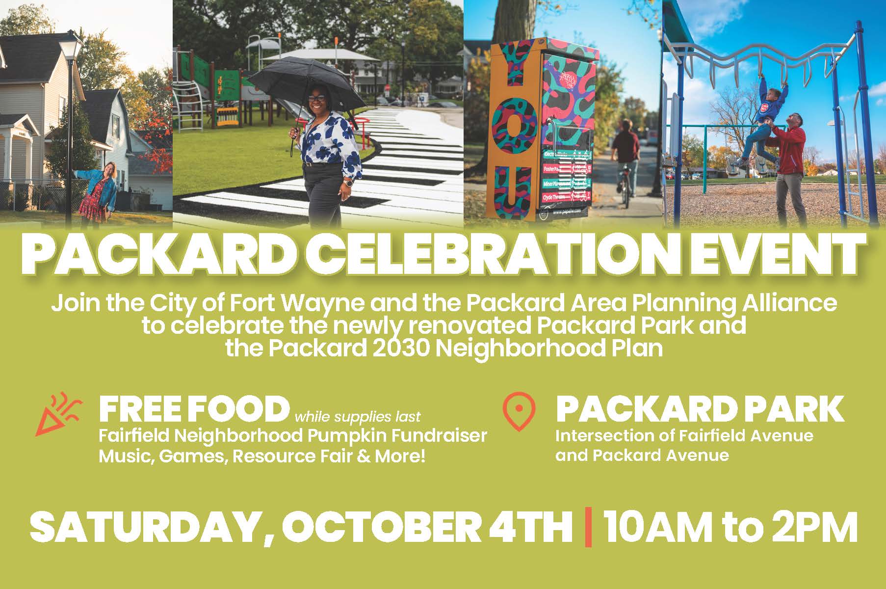 The Packard Area Planning Alliance and the City of Fort Wayne Department of Neighborhoods will host an official celebration for the Park on Saturday, October 4, with support from the Foellinger Foundation.