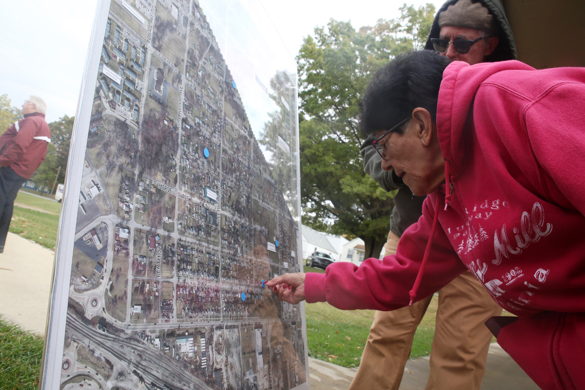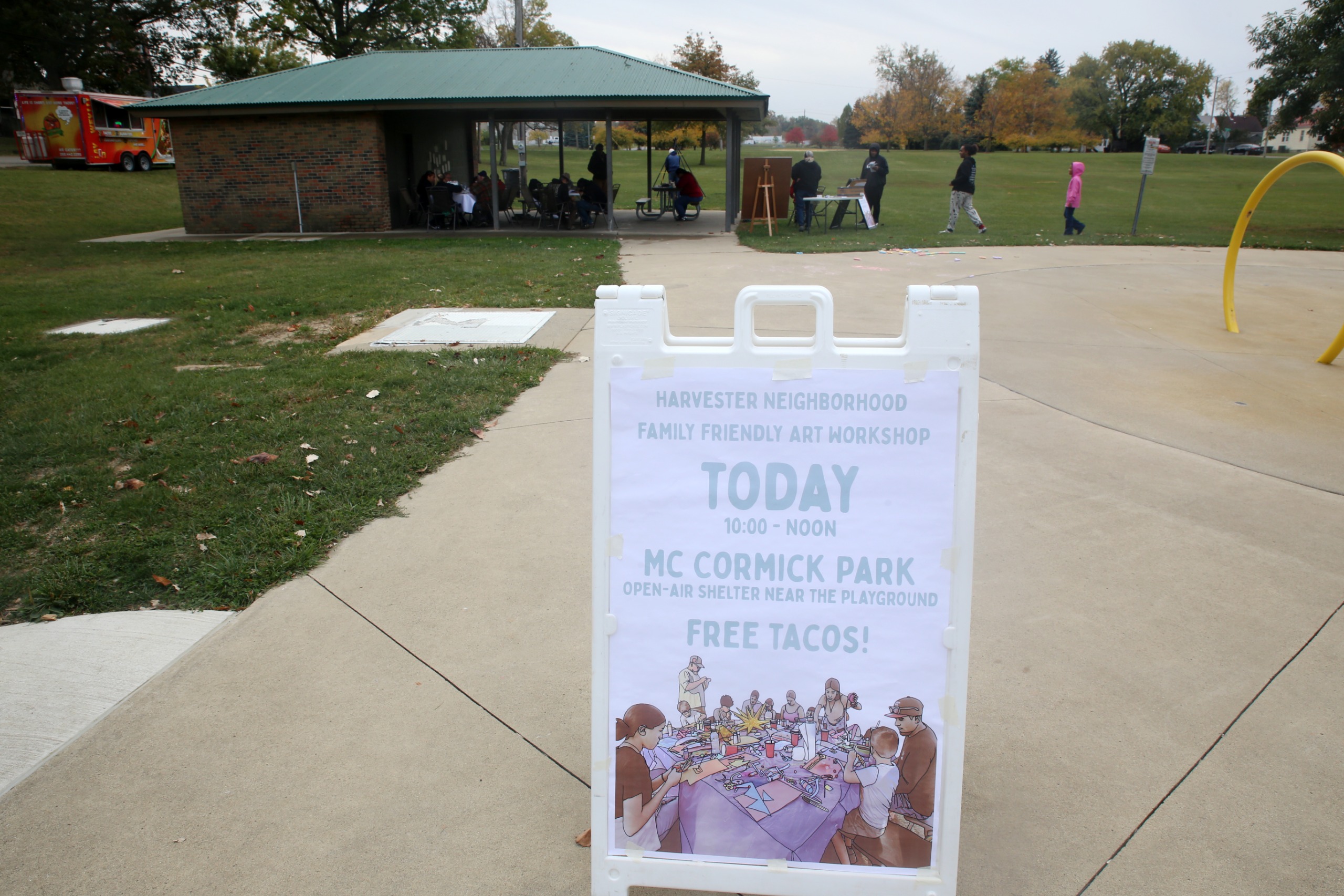 In October 2025, Argentinian artist Sasha Primo spent a week in Fort Wayne meeting residents and public art officials to collect feedback to help create Harvester’s installation, culminating in a workshop held at McCormick Park on the 25th.